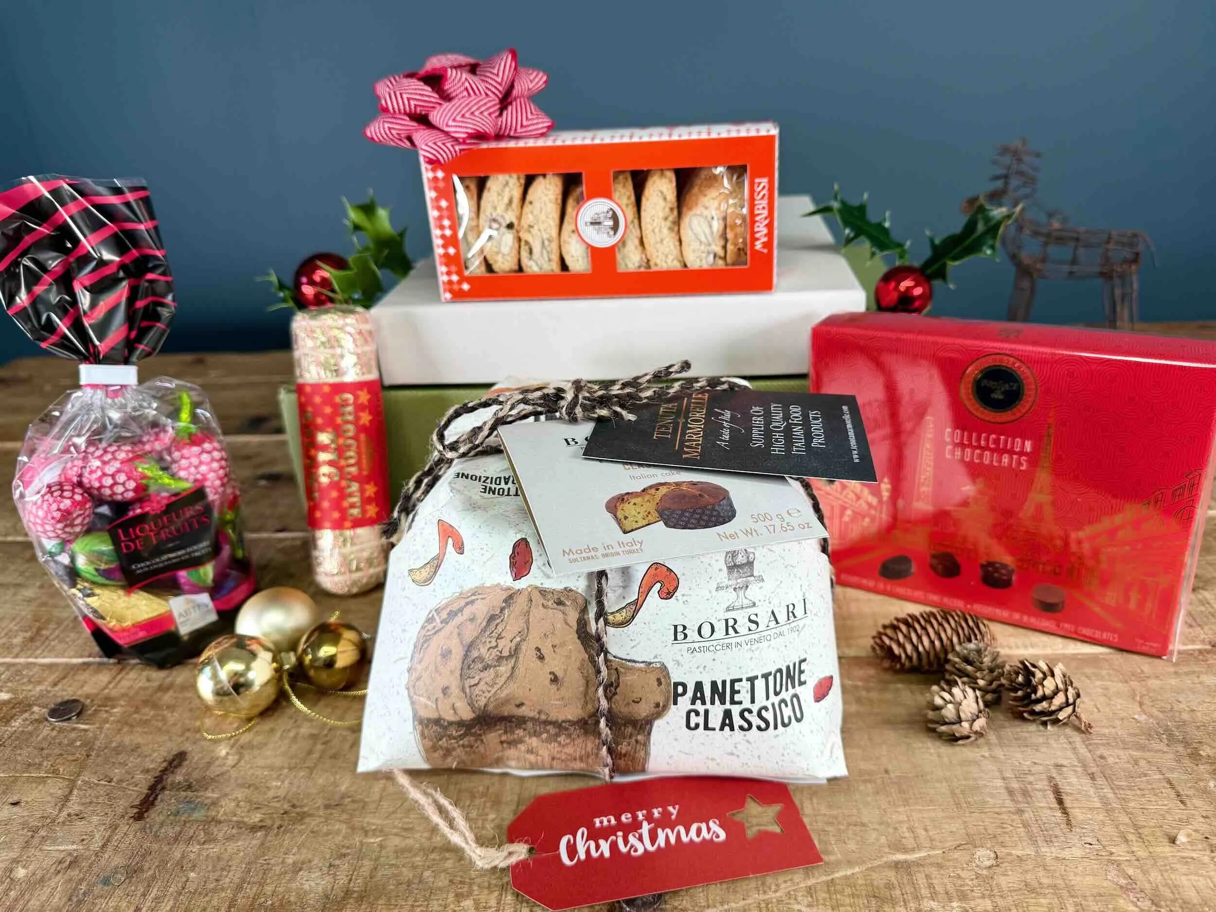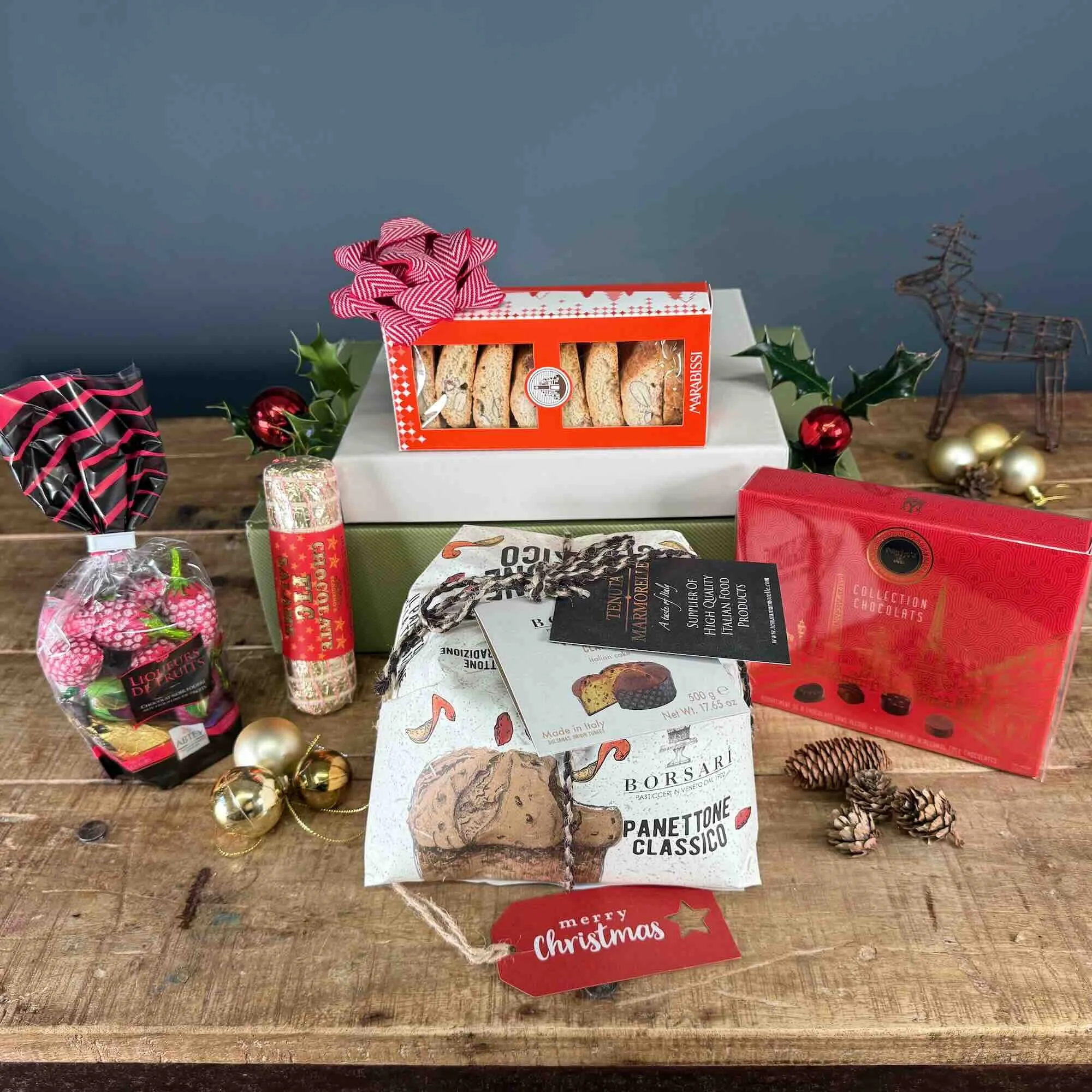 At its heart is the beautifully hand-wrapped Borsari Classic Panettone, a traditional Italian favourite with soft, airy texture and gently perfumed notes of citrus and raisins. It’s the kind of centrepiece that instantly fills a room with festive spirit.