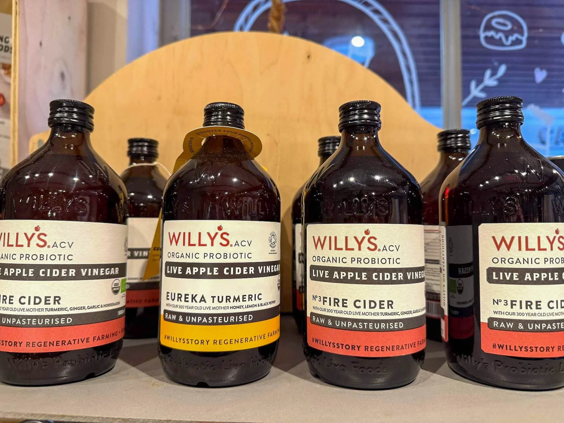 We celebrate the rich food traditions of Herefordshire with bottles of Butford Organic Perry, pressed from single-variety pears, and Newton Court Ciders made just down the road, including River Cottage Organic collaborations. Add in bottles from Gattertop Drinks Co. Whether it’s their Damson No.12 liqueur or Botanic No.7 vodka, and you have the essence of local craftsmanship in liquid form. Shelves are also stocked with Willy’s Organic Apple Cider Vinegar, raw and probiotic, another Herefordshire treasure with global recognition.